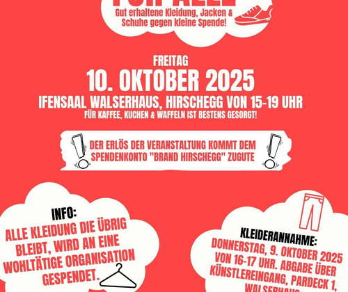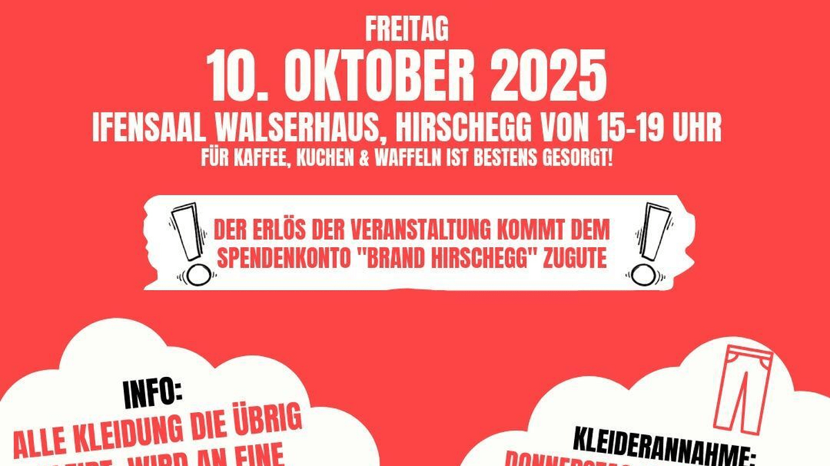 Der Erlös der Veranstaltung kommt dem Spendenkonto "Brand Hirschegg" zugute. Wann: Freitag 10.10.2025