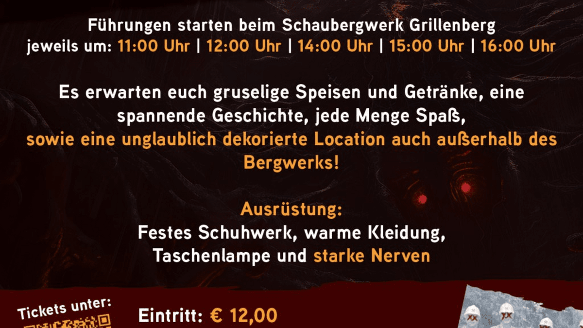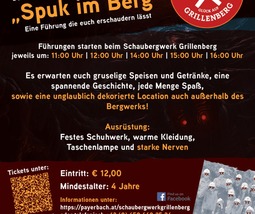 Der Verein Schaubergwerk Payerbach zu einer gruseligen Führung ein. Rund um das historisch belassene Eisensteinbergwerk erwarten euch gruselige Speisen und Getränke, eine spannende Geschichte und eine unglaublich dekorierte Location.