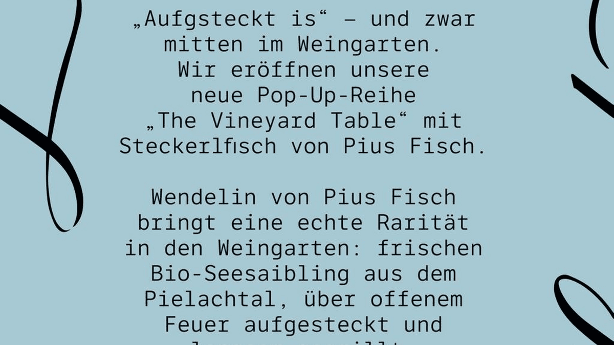 „Aufgsteckt is“ – und zwar mitten im Weingarten. Wir eröffnen unsere neue Pop-Up-Reihe „The Vineyard Table“ mit Steckerlfisch von Pius Fisch.