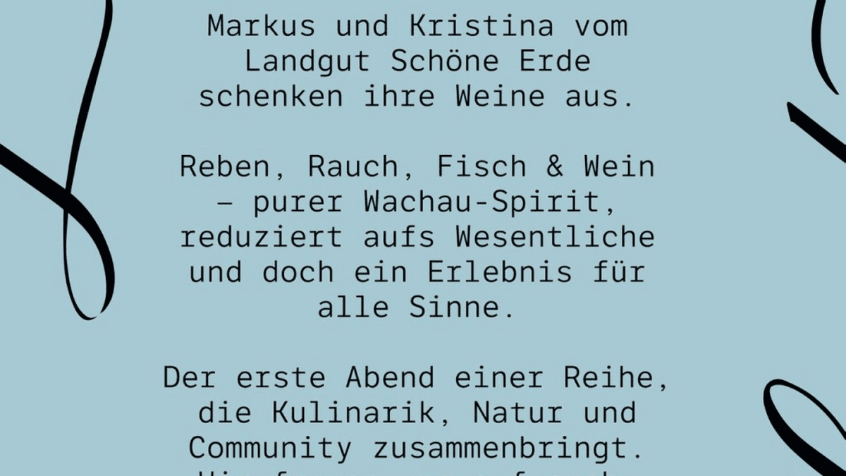 Reben, Rauch, Fisch & Wein – purer Wachau-Spirit, reduziert aufs Wesentliche und doch ein Erlebnis für alle Sinne. Der erste Abend einer Reihe, die Kulinarik, Natur und Community zusammenbringt.