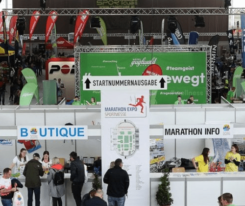 Viele Aussteller – aus den Bereichen Laufschuhe, Laufbekleidung, Laufzubehör, Sportartikel, Sportnahrung, Wellness und Sportveranstaltungen – präsentieren den Besuchern ihre Produkte.