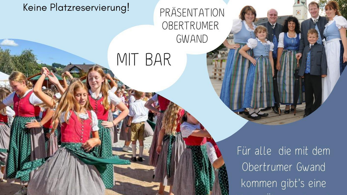 Trachtenverein D'Seerosner - 15 Jahre Obertrumer Gwand & 20 Jahre Kindertrachtler WANN: Samstag, 25. Oktober 2025, ab 19:30 Uhr WO: im Braugasthof Sigl in Obertrum am See Eintritt: VVK 5,00 Euro / AK 7,00 Euro VVK-Karten erhältich bei Fa. Josef Seidl GmbH: Tel. +43 6219/77 77 - 14 bzw. E-Mail andreas@seidl.at Highlights: Präsentation Obertrumer Gwand Mit BAR Für alle, die im Obertrumer Gwand kommen, gib es eine kleine Überraschung! Musikalische Umrahmung durch die "Halthäusl-Musi"