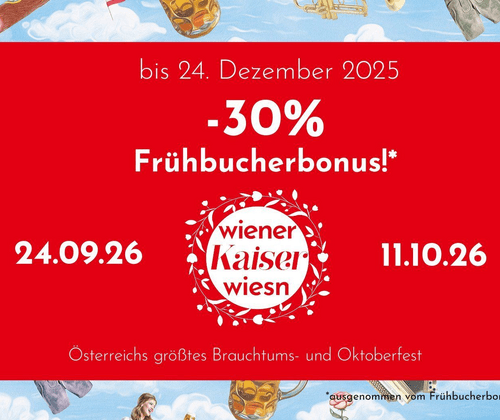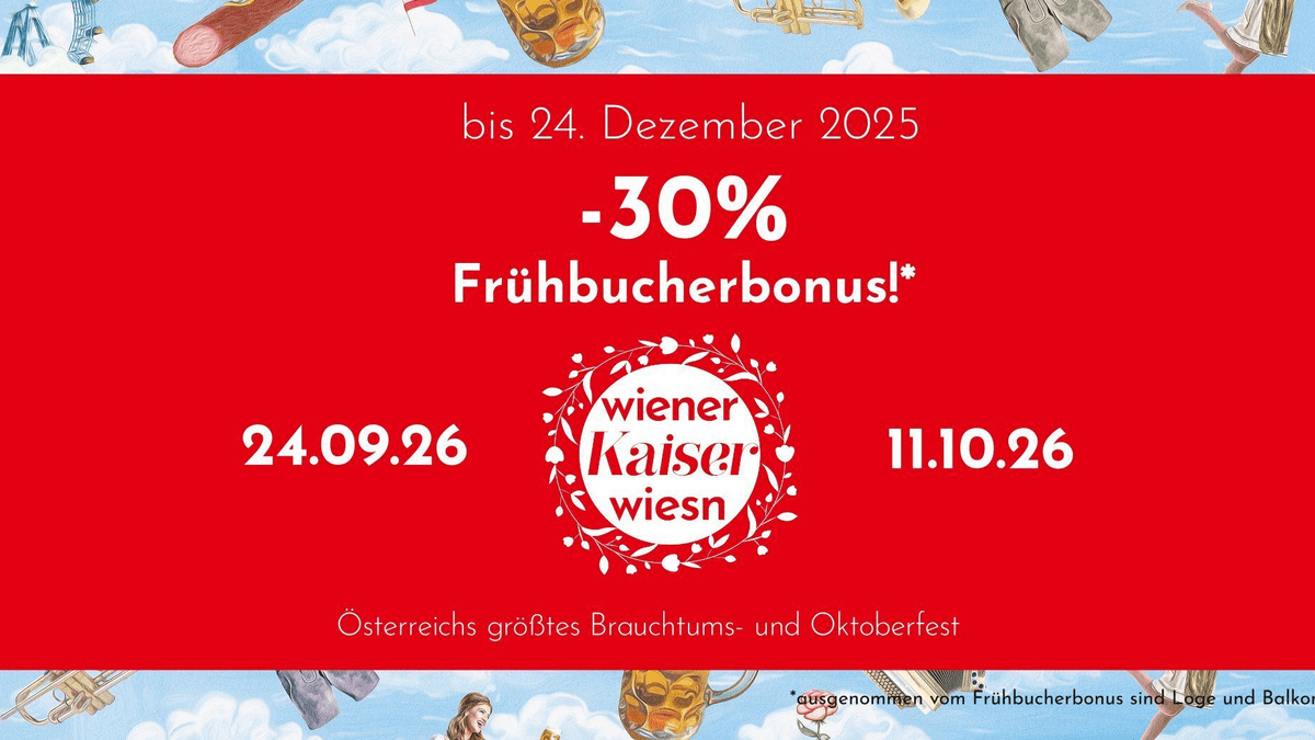 Der Verkauf der begehrten Tickets für das Gösser- und Wiesbauerzelt von 24.September bis 26.September 2026 startet bereits am 12. Oktober 2025 mit einem -30% Frühbucherbonus, der bis 24.Dezember 2025 gültig ist.