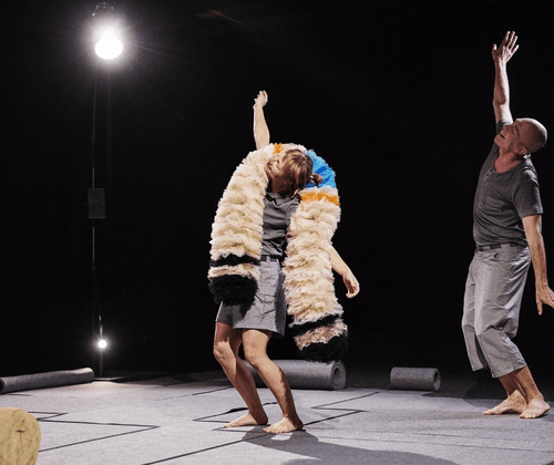 Zwei Tänzer:innen erkunden mit großen und kleinen Bewegungen die geheimnisvolle Welt unter ihren Füßen. Stück für Stück entdecken sie Farben, Formen und Verborgenes. Mal sanft, mal schwungvoll bewegt sich alles – Arme, Beine, Körper und sogar die Teppiche selbst. Plötzlich tauchen bunte Vierecke auf, aus Stoffrollen schlängeln sich geheimnisvolle Formen. Licht und Musik verwandeln die Bühne in eine immer neue Welt. Und am Ende? Da dürfen alle selbst mitmachen und Teil des Spiels werden!