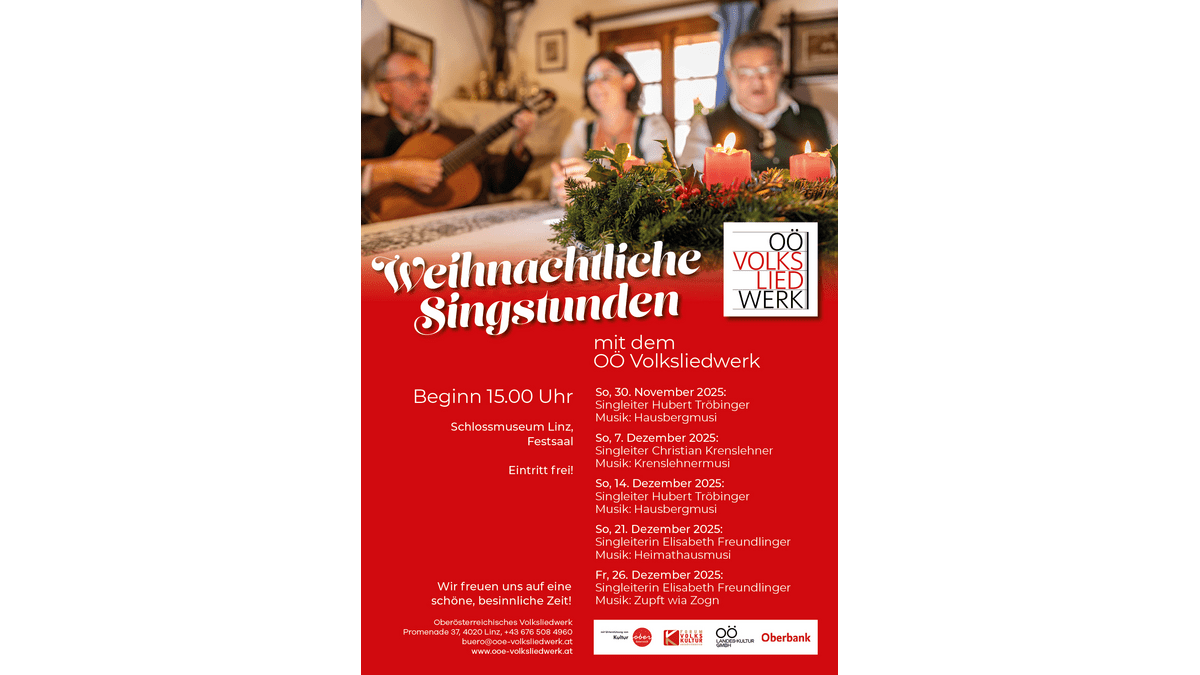 Weihnachtliche Singstunden mit dem OÖ. Volksliedwerk