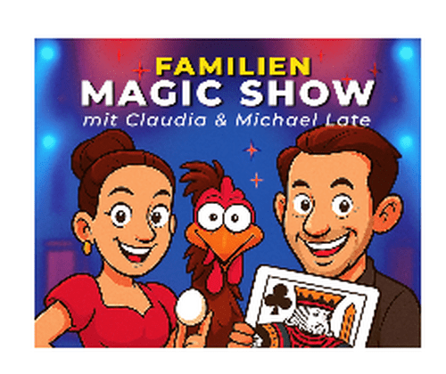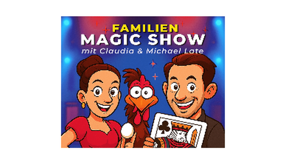 Claudia & Michael Late zeigen, wie spannend und witzig moderne Zauberkunst sein kann. In rund 60 Minuten erleben Kinder und Erwachsene außergewöhnliche Illusionen, verblüffende Tricks und jede Menge gemeinsames Lachen. Die beiden Magier stehen für Magie mit Herz, Humor und Nähe zum Publikum. Sie verbinden große Bühnenmomente mit kleinen Wundern direkt im Saal – und schaffen Augenblicke, die man nicht so schnell vergisst. Eine Show voller Staunen, Spaß und echter Magie! Mit dabei: Henrietta - das magische Huhn Geeignet für alle ab 7 Jahren.