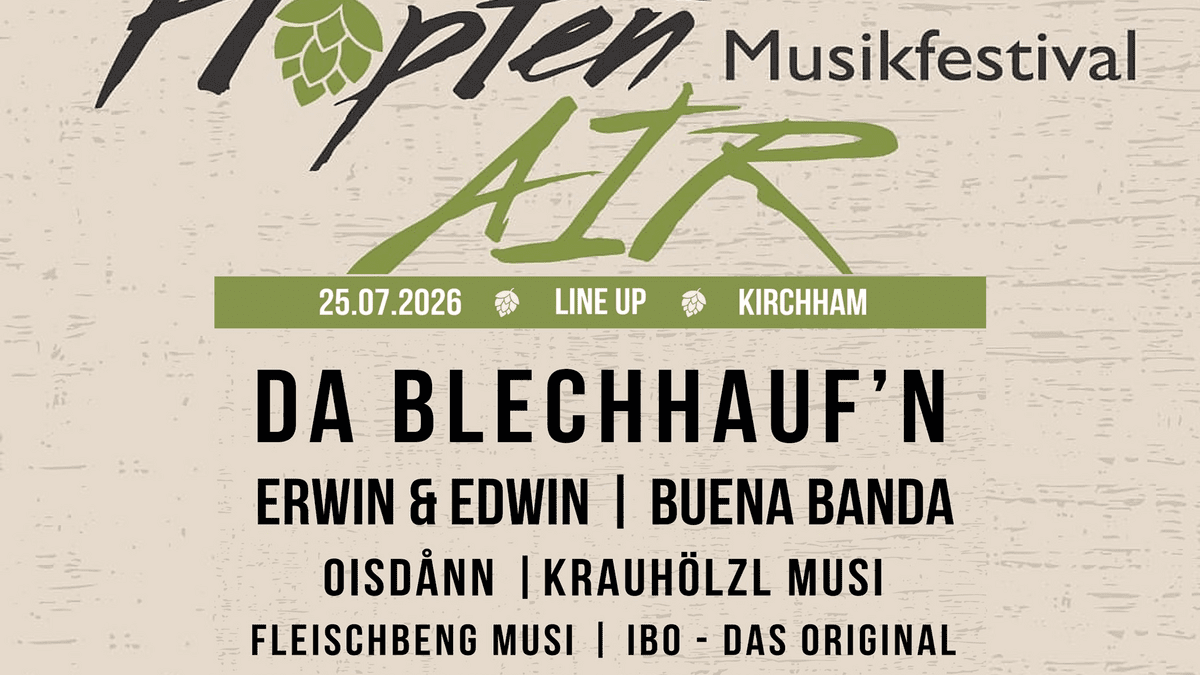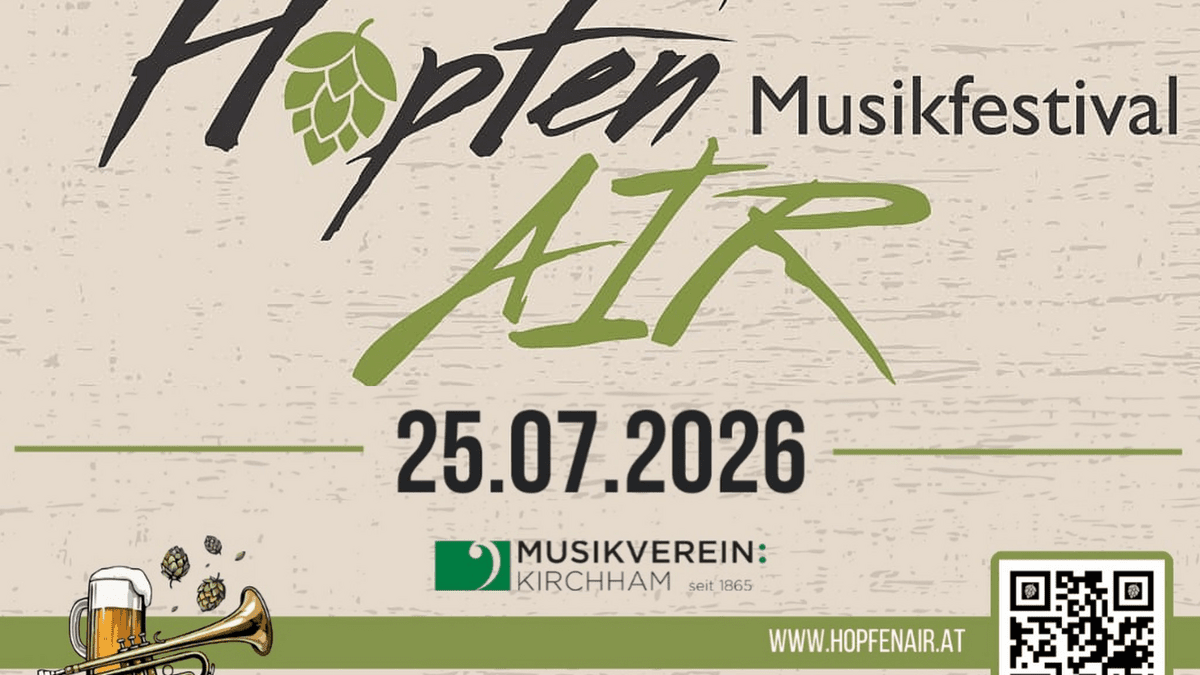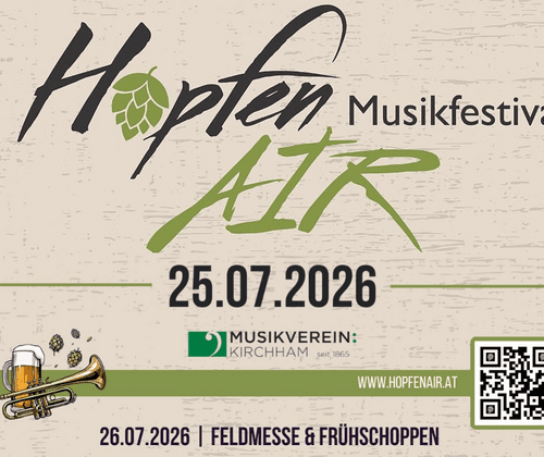 Save the date: 25.07.2026Das Hopfen Air 2026 ist mehr als nur ein Musikfestival. Es ist ein Treffpunkt für Musikliebhaber, Feinschmecker und alle, die einfach nur Spaß haben wollen. Während auf der Bühne die Blasmusik ertönt, sorgen die Food Trucks für das leibliche Wohl. Die Kombination aus mitreißenden Klängen, köstlichem Essen und einer entspannten Atmosphäre macht das Hopfen Air zu einem unvergesslichen Erlebnis!We proudly present - LINE UP Hopfen AIR 2026 Wir freuen uns riesig, auch dieses Mal wieder die absolute Spitzenklasse der österreichischen Blasmusikszene zu uns nach Kirchham zu holen.