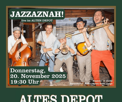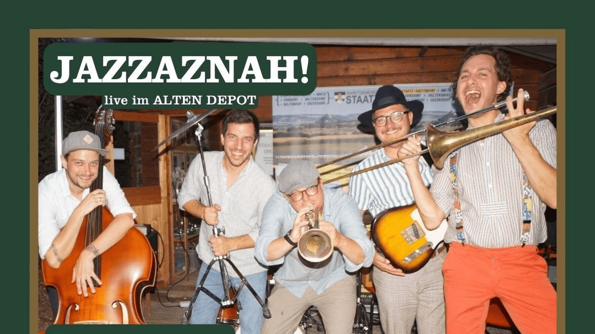 Einer der Lieblingsbegriffe der Weinviertler (Jessas na) wird zu einem musikalischen Statement: JAZZAZNAH! ist DER Weinviertler Ausdruck einer 5-köpfigen Formation, welche durch ihre gemeinsame Leidenschaft zum Improvisieren vereint wurde. Die Musiker haben es sich zur Aufgabe gemacht, den Weinviertler Ausdruck des Erstaunens auf musikalische Art und Weise neu zu interpretieren. Hierbei entsteht eine Fusion aus Jazz Standards und modernen Rhythmen bis hin zu traditionellen Stücken aus der Blasmusik, gepaart mit Gesang in Weinviertler Mundart. Ohne Rücksicht auf Verluste werden scheinbar unüberwindbare Grenzen musikalisch aufgebrochen und in ein neues Gewand gekleidet. Überzeugt euch selbst und lasst euch in Erstaunen versetzen mit einem lauten Jazzaznah!
