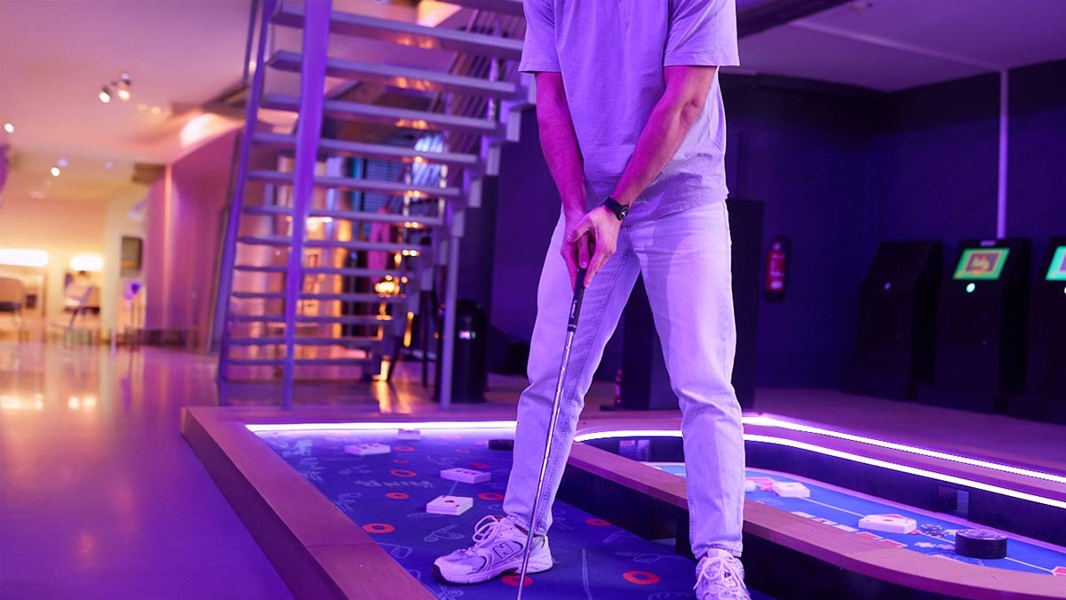 Jetzt erleben! Sichert euch eure Auszeit mit Jochen Schweizer. Inhalt Adventure Minigolf mit atemberaubendem Kulissenbau Eine Reise durch die Geschichte von Film- und Spielekultur Einweisung und Betreuung durch einen erfahrenen Instruktor Snack (Nachos mit Dips sowie ein Softgetränk oder Bier nach Wahl Teilnehmer Gutschein gültig für 2 Personen Gruppengröße: 2-20 Personen Dauer Gesamtdauer: ca. 2 Stunden Reine Erlebnisdauer: ca. 1 Stunde Ausrüstung & Kleidung Wird gestellt: Schläger, NFC-Armband (zum Registrieren an den Stationen) Teilnahmebedingungen Mindestalter: 6 Jahre Teilnahme für Personen mit Handicap nach Absprache mit dem Veranstalter möglich Kein Alkohol-/Drogeneinfluss