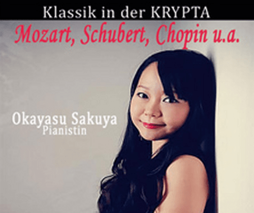 Die gefragte Künstlerin ist Gewinnerin zahlreicher internationaler Preise und spielt auf der ganzen Welt. 2019 gab sie ihr Debut in der Carnegie Hall in New York und wurde ebenso im Wiener Musikverein vom Publikum gefeiert. Im intimen Rahmen der Krypta ist es ein besonders Vergnügen, Sakuya Okayasu so persönlich erleben zu können. Ein Fest für die Sinne.