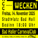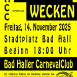 Liebe Freunde des BHCC,die neue Faschingssaison steht vor der Tür und es haben bereits die Vorbereitungen dafür begonnen.Das Narrenwecken findet am Freitag, 14. November 2025 um 18.00 Uhr am Hauptplatz Bad Hall vor dem Rathaus, statt. Bei dieser Veranstaltung wird das neue Prinzenpaar der Öffentlichkeit vorgestellt.Eine launige Antrittsrede und die Faschingsgesetze die vom neuen Prinzenpaar erlassen werden, die Übergabe des Rathausschlüssels durch Herrn Bürgermeister Bernhard Ruf, Musik und Getränke, versprechen humorvolle Momente und einen gelungenen Start in eine unvergessliche Faschingssaison.