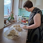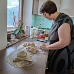 Unsere Ortsbäuerin Karin führt uns ein in die Kunst des Brotbackens. Sie zeigt uns wie man ein Bauernbrot nach traditioneller Art zubereitet, hinterher wird dieses mit einem Glas Milch verkostet.
