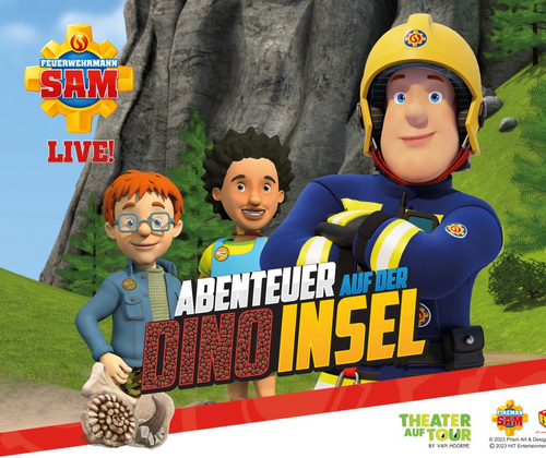 Feuerwehrmann Sam rettet weiter... Nach dem Erfolg von „Feuerwehrmann Sam Live! – Der verlorene Piratenschatz“ kehrt der Held der Nachbarschaft mit einem nagelneuen Theaterabenteuer zurück! Gemeinsam mit dem Feuerwehrteam, Mandy und seinen Freunden tritt Feuerwehrmann Sam in der Familienshow „Feuerwehrmann Sam Live! – Abenteuer auf der Dino Insel“ in Aktion.