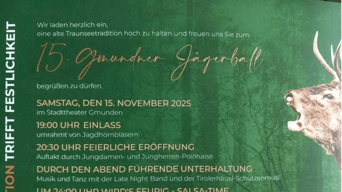 Karten sind erhältlich unter +43 660 13 11 390. Wir freuen uns auf euer Dabeisein! Kartenabholung: zw. 4. und 13. November 2025 im „Mein Style“, Am Graben 12, 4810 Gmunden. (Öffnungszeiten: Di – Fr: 09.00 – 12.00 Uhr und 14.00 – 18.00 Uhr und Sa: 09.00 – 17.00 Uhr)