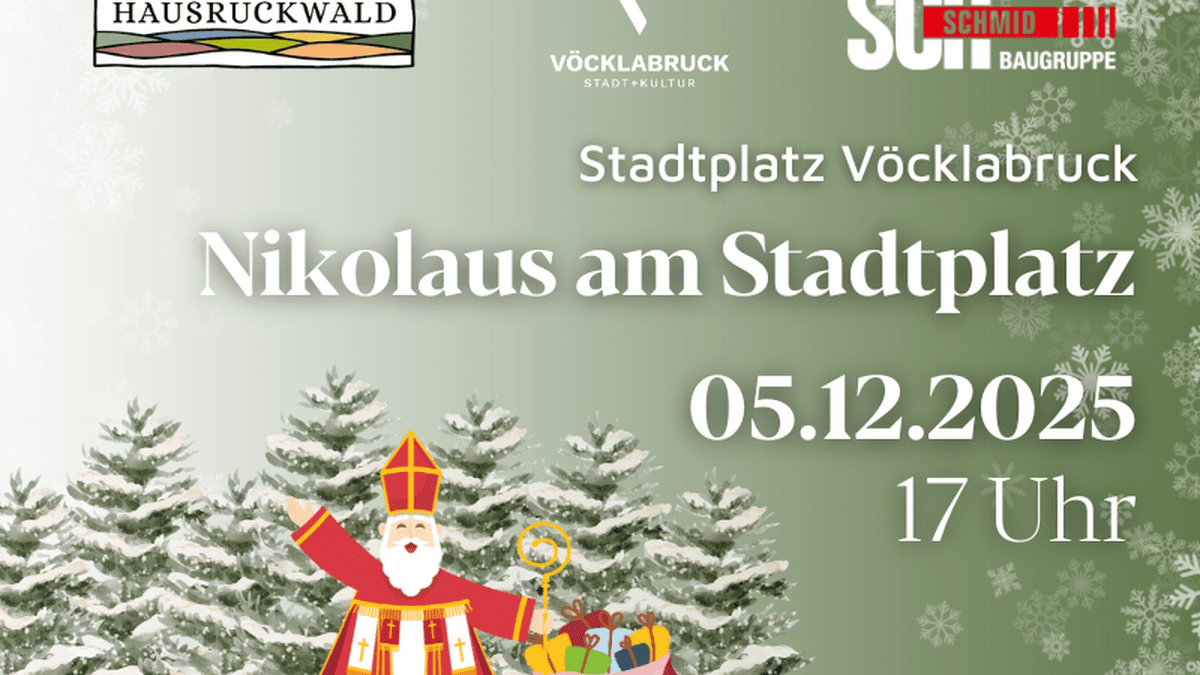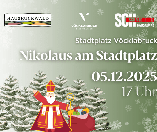 Nikolausbesuch am Vöcklabrucker Stadtplatz Am 05.12.2025 besucht der Nikolaus wieder alle braven Kinder am Vöcklabrucker Stadtplatz und verteilt Geschenke und Sackerl. Musikalisch umrahmt wird der Nikolausbesuch von einer regionalen Bläsergruppe. Persönliche Sackerl für die Kinder können ab 02.12. im Tourismusbüro Vöcklabruck abgegeben werden. Info unter: 07672/26644 Der Vöcklapunsch ist wieder regulär von 16-22 Uhr geöffnet! Die Vöcklabrucker Gastronomie und Vereine freuen sich über Ihr Kommen!