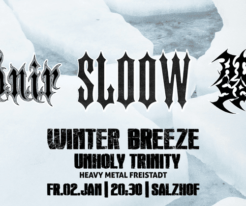 Heavy Metal FreistadtDer traditionelle und lautstarke Jahresauftakt im Freistädter Musikprogramm – Black, Death und Thrash, die “unheilige Dreifaltigkeit” des Heavy Metal auf einer Bühne versammelt.★ HEIDNIR ★Tiefer in den geistigen Kosmos, weiter in die Dunkelheit … Heidnir ist eine Ein-Mann-Black-Metal-Band aus Oberösterreich, die die bittere Kälte des traditionellen Black Metals mit mystischen Melodien und düsteren Gesängen vereint. In ihren Kompositionen verschmelzen die rauen, kalten Klänge des Schwarzmetalls mit einer Atmosphäre des Unheimlichen und entführen die Hörer*innen auf eine Reise in die tiefsten Abgründe des Universums.Das dritte Album von Heidnir steht bereits in den Startlöchern und verspricht, die musikalische Reise noch weiter zu entfalten. Erste Songs aus dem neuen Werk werden auf dem WINTER BREEZE 2026 präsentiert und lassen die Vorfreude auf das kommende Album wachsen.www.instagram.com/h.e.i.d.n.i.r★ SLOOW ★