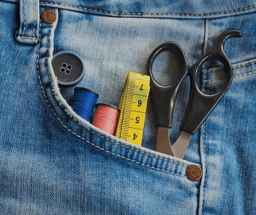 • Eigene Nähmaschine und Nähutensilien (z. B. Schere, Stecknadeln, Maßband, Garn, eventuell Schnittmuster)