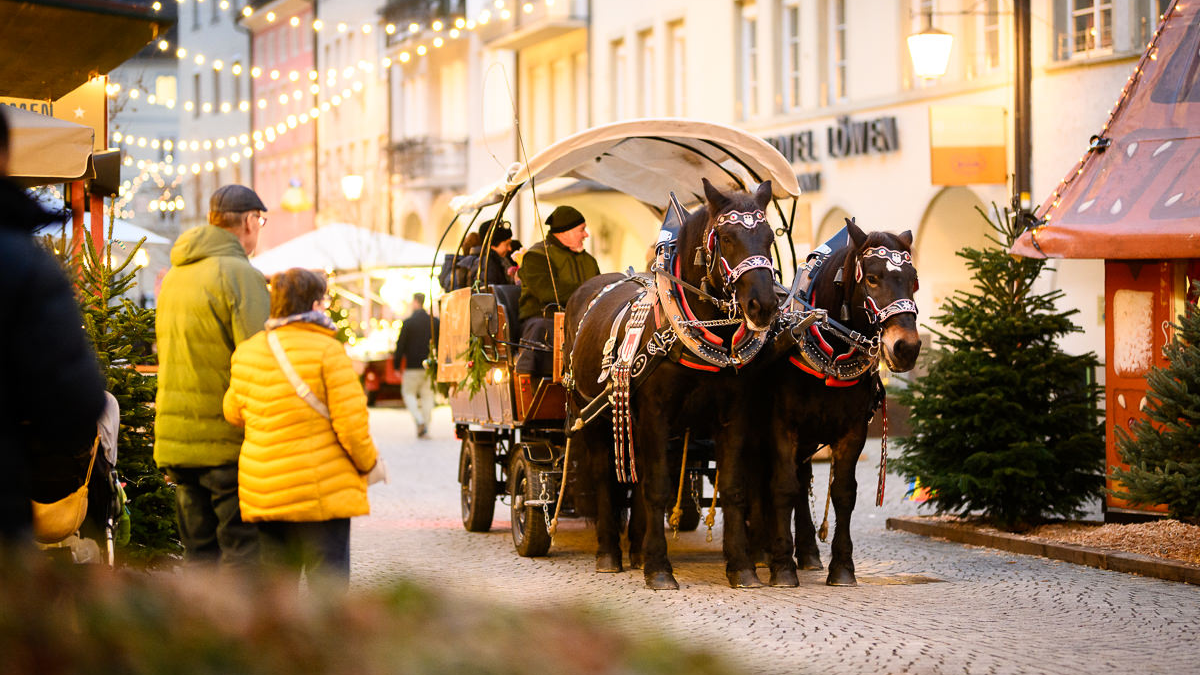 Ein besonderes Erlebnis erwartet die Besucher:innen bei einer romantischen Kutschenfahrt durch die Altstadt. Einfach zurücklehnen und mit offenen Augen und Ohren die weihnachtliche Kulisse auf sich wirken lassen, dabei erlebt man den vorweihnachtlichen Zauber auf einer ganz besonderen Perspektive. Immer donnerstags und freitags sowie am 23. Dezember nimmt die weihnachtlich geschmückte Kutsche Gäste mit auf eine rund 30-minütige Fahrt.Termine