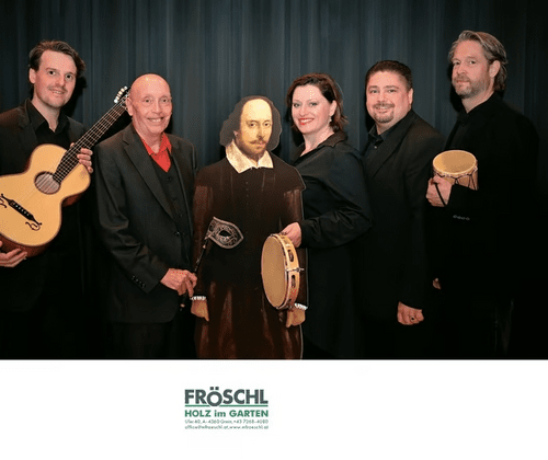Texte im Wechsel mit Musik von  William Byrd, Thomas Morley, John Downland,…  Wussten Sie, dass William Shakespeare auch begeisterter Sänger und Musikant war? Höchste Zeit, dass wir nicht nur seine Poesie, sondern auch Lieder in seinen Stücken zu Gehör bringen! Begleiten Sie uns auf einem Spaziergang durch Shakespeares Leben, Werk und Zeit!Wort und Musik im Wechsel! Die Mischung macht´s! Hier Monologe, Szenen und Sonette, die wir fast alle kennen – dort Kostbarkeiten in Liedform, die Sie noch nie gehört haben! Mal luftig, mal erdig, mal albern, mal tief, mal sehnsuchtsvoll – und sehr oft verliebt! Ein Abend für alle Sinne! (Kopf, Herz, Bauch und Zwerchfell.) Seine Einzelteile sind verbunden durch eine Perlenschnur der Schönheit.