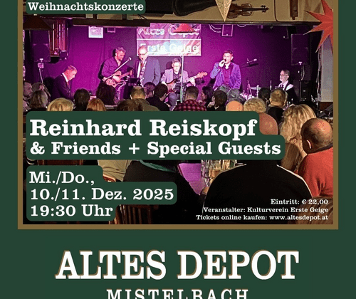 Traditionell, alle Jahre wieder! Versäumen Sie keinesfalls diesen Weihnachts-Event der Extraklasse! Ist Reinhard Reiskopf mit seiner Band im ALTEN DEPOT zu Gast, dann ist Weihnachten nicht mehr weit ... „Alle Jahre wieder“ - unter diesem Motto stimmt Reinhard Reiskopf sein Publikum auf die ruhigen, besinnlichen Tage des Jahres ein. Wobei, ganz so ruhig geht es dann während des Konzertes doch nicht zu ... Mit viel Witz und Charme taucht der Weinviertler Sänger gemeinsam mit den Zuhörern in die Welt der schönsten Weihnachtslieder - von „Rudolph the red nosed reindeer“, „Winterwonderland“ über „Have yourself a merry little Christmas“ ... spannt sich der Bogen bis zu den traditionellen deutschsprachigen Liedern. Ein stimmungsvoller Abend mit Mitsing-Garantie!