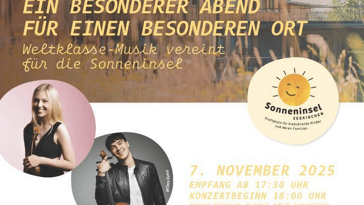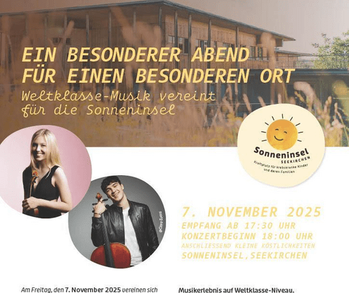Am Freitag, den 7. November 2025, laden wir euch herzlich zu einem Benefizkonzert zugunsten der Sonneninsel Seekirchen ein.
