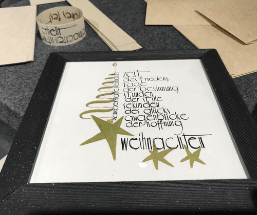weise hin zu Kalligraphie. (Federn/Stifte, Tinte/Tusche, Papiere, Lineale) mit-