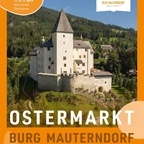 Frühlingshafter Ostermarkt am 5. und 6. April 2025 auf Burg Mauterndorf! Gönnen Sie sich aufblühende, frühlingshafte Stimmung und besuchen Sie den diesjährigen Ostermarkt in den Innenräumen der Burg Mauterndorf jeweils in der Zeit von 11:00 - 17:00 Uhr. Lassen Sie sich aus dem vielfältigen, kunsthandwerklichen Angebot der zahlreichen Aussteller am Ostermarkt zu zauberhaften Geschenkideen inspirieren. Auch für die jungen Gäste gibt es ein buntes Programm. Neben österlichen Kunsthandwerk, Osterkränze und Ostergestecke auch kulinarische Spezialitäten wie Lungauer Osterschinken, Würste, Osterbutter, Ostereier, Kräuterprodukte, Osterbäckereien uvm für den persönlichen Weihkorb angeboten. Zwischendurch haben Sie die Möglichkeit sich in der Burgschenke mit Erfrischungen zu stärken und kulinarisch verwöhnen zu lassen! In der Zeit von 11:00 - 17:00 Uhr erleben Sie an jedem Tag Live-Musik mit den unterschiedlichsten Musikgruppen. Die Osterwerkstatt ist von 13:00 - 16:00 Uhr für unsere jungen Gäste geöffnet - hier können kunterbunte Ostergeschenke gebastelt sowie der Palmbuschen selbst geschmückt werden. Samstag, 5. April11.00 - 14.00 Uhr Pichlschneider Musi13.00 Uhr Markteröffnung durch Herrn Bürgermeister Ing. Herbert Eßl14.00 - 17.00 Uhr Sunnseit'n TrioSonntag, 6. April11.00 Uhr Radiofrühschoppen in der Burgschenke mit BB-Böhmische Blasmusik,Krakauer Tanzlmusi, Männergesangsverein Mauterndorf13.00 - 17.00 UhrRamsy Trio