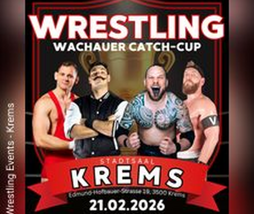 Die Catcher sind zurück in der Wachau! Am 21.02.2026 verwandelt sich der Stadtsaal Krems in die ultimative Catch-Arena. Sei live dabei, wenn internationale Superstars um den Wachauer Catch-Cup kämpfen.Das Wrestling-Highlight 2026 in Niederösterreich!