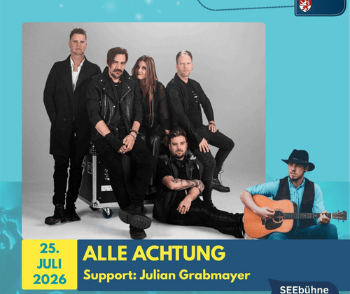 Mit ihrer Mischung aus eingängigen Melodien, Indie- und Schlager-Elementen bleibt Alle Achtung ein Highlight der österreichischen Musikszene. Das Konzert verspricht ein Live-Erlebnis voller Emotion, Hits und mitreißender Stimmung – ein Abend, den kein Fan moderner Austropop-Popmusik verpassen sollte.