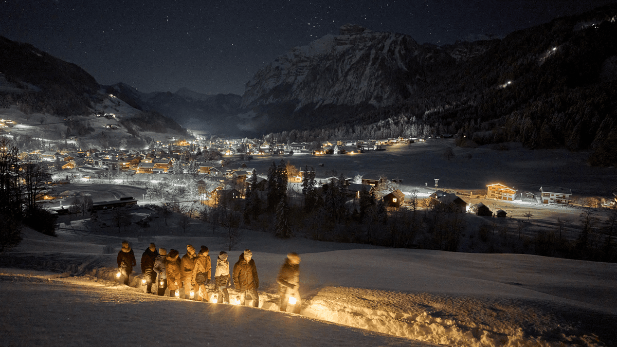 „Durch die Straßen auf und nieder, leuchten die Laternen wieder.“In der klaren Abendluft führt Wanderführer Andreas durch Mellau. Das warme Licht der Laternen begleitet Klein und Groß auf Wegen und Pfaden und lässt die Umgebung in einem besonderen Schein erscheinen.