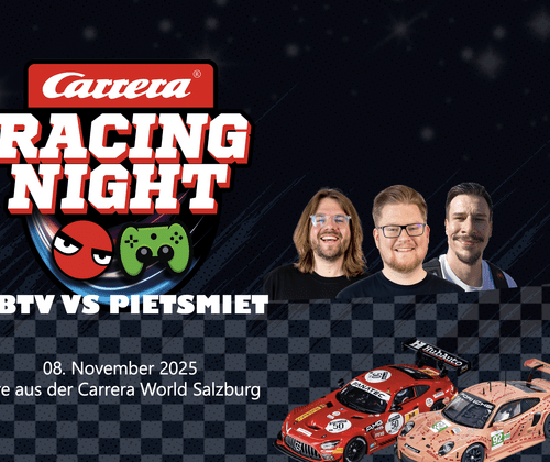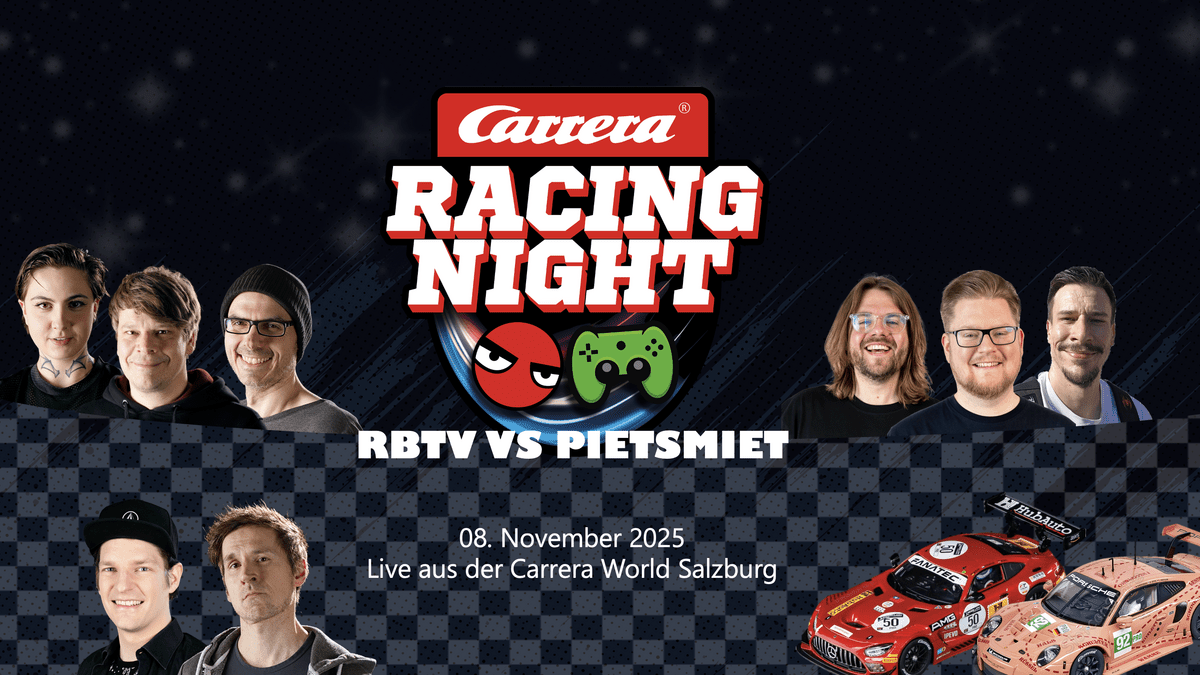 Am 8. November 2025 verwandelt sich die Carrera World bei Salzburg erneut zur ultimativen Bühne für Speed, Spannung und Show: Die Carrera Racing Night geht in die zweite Runde und wie schon im Vorjahr wird es laut, bunt und reichweitenstark. Nach dem großen Erfolg im vergangenen Jahr und den mehrfachen Auszeichnungen mit dem DCA Award und dem BCM Award bringt die Kultmarke gemeinsam mit den Rocket Beans (RBTV) und PietSmiet ein spektakuläres Live-Event an den Start, das Gaming-, Motorsport- und Entertainment-Welten auf einzigartige Weise verbindet. Prominente Gäste und bekannte Content Creators treten in verschiedenen Racing-Challenges gegeneinander an und kämpfen um den Titel des Carrera Racing Champions. Dabei entsteht ein einzigartiges Zusammenspiel aus analogem Spielspaß, Gaming und emotionalem Live-Entertainment: ganz im Sinne des Markenclaims „We love Racing“.Prominente Gäste und hochkarätige TeamsAuch 2025 dürfen sich Fans wieder auf spannende Duelle zwischen prominenten Gästen und beliebten Content Creator freuen: