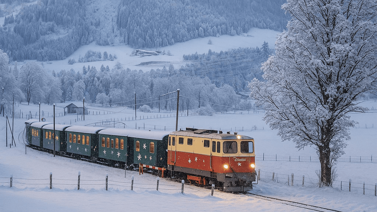 Steig ein und lass dich verzaubern: Jeden Samstag im Advent fährt der nostalgische Dieselzug zum romantischen Nationalparkadvent in Mittersill und wieder zurück. Während draußen die Winterlandschaft vorbeizieht, erfüllt im Zug der Duft von Glühwein, Punsch und Weihnachtsgebäck die Luft. In gemütlicher Atmosphäre reist du durch das verschneite SalzburgerLand – begleitet von Musik, Lichtern und der Vorfreude auf den Adventmarkt. Der Barwagen sorgt unterwegs für wärmende Momente und festliche Stimmung. Ein Erlebnis wie früher – besinnlich, charmant und unvergesslich!