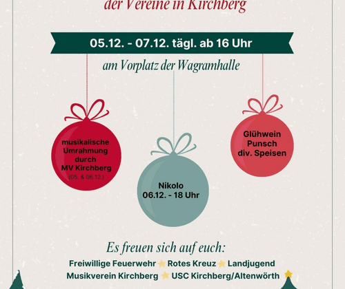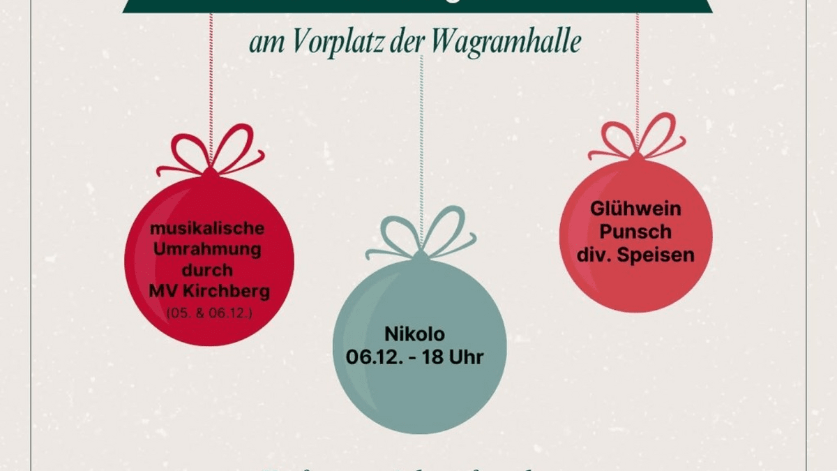 Von 5. bis 7. Dezember 2025, jeweils ab 16 Uhr, laden die Kirchberger Vereine herzlich zur „Adventsstimmung“ am Vorplatz der Wagramhalle ein.