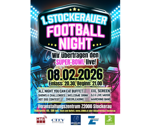 1. Stockerauer Football Night - Super Bowl live im Z2000