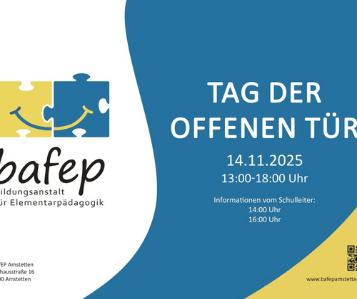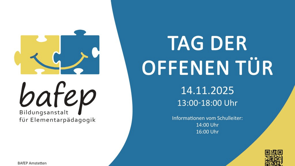Dann kommt am 14.11.25 zu uns und informiert euch über unsere Schule, die BAfEP Amstetten!