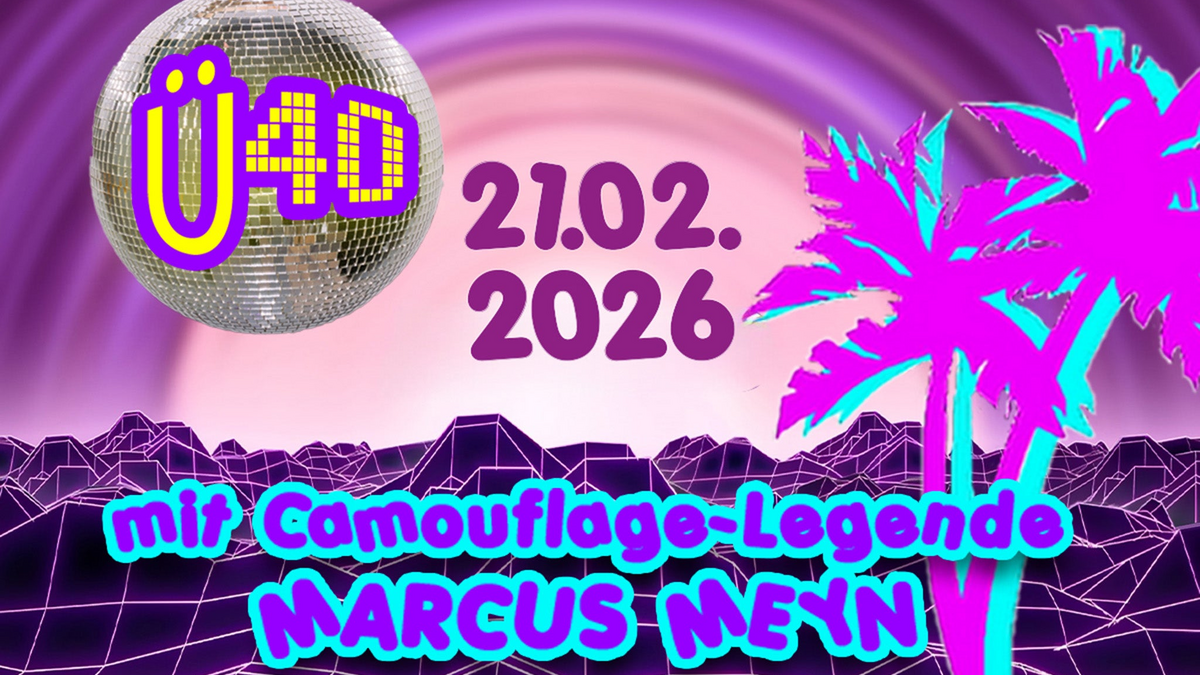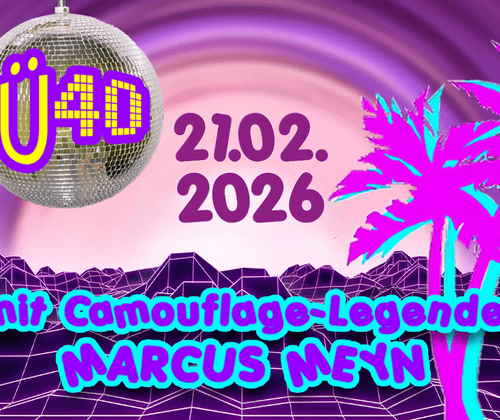 Die Ü40 Party mit Marcus Meyn und DJ Pflaumi findet in einer urbanen Location statt und richtet sich an ein Publikum über 40 Jahre. Die Veranstaltung bietet eine Mischung aus Musik und Tanz, ideal für gesellige Abende in lockerer Atmosphäre.