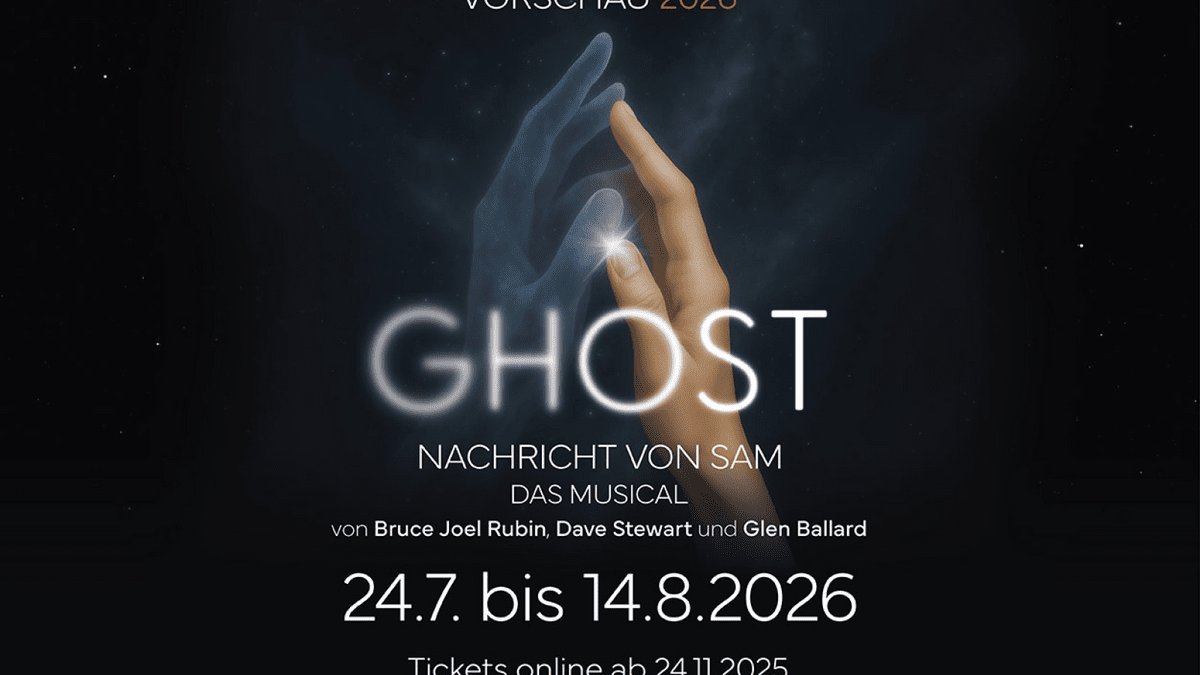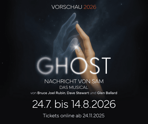 Mit der Musicaladaption des oscarprämierten Hollywood-Blockbusters „GHOST – Nachricht von Sam” steht im Sommer 2026 eine der größten Liebesgeschichten aller Zeiten auf dem Spielplan der Felsenbühne Staatz. Das Autorenteam Bruce Joel Rubin, Dave Stewart (Mastermind der Formation Eurythmics) und Glen Ballard haben die berührende und packende Filmstory in ein ebensolches Musical verwandelt, in dem natürlich auch der Hit "Unchained Melody“ nicht fehlen darf.