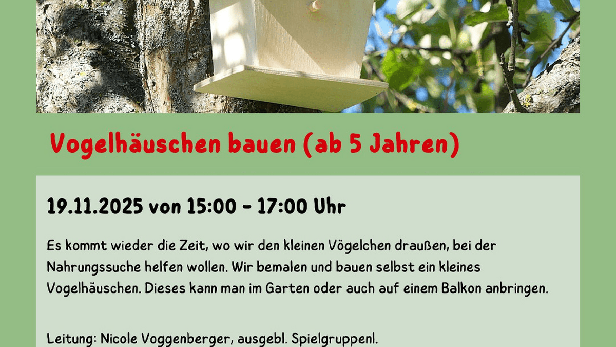 EKiZ Braunau: Vogelhäuschen bauen (ab 5 Jahren)