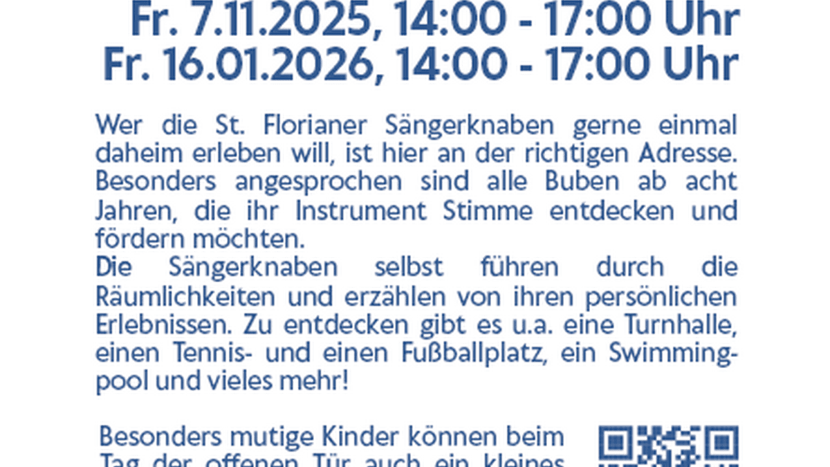Tag der offenen Tür Sängerknabeninternat St. Florian 14:00 Uhr