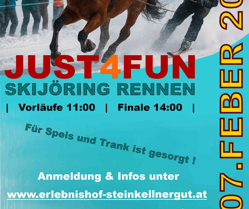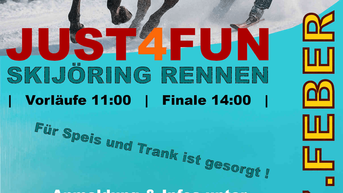 Unser Just 4 Fun Skijouring-Rennen für Jedermann. Bildet ein Team (Reiter & Skifahrer) und bewältigt unseren Parcours fehlerfrei. Weitere Infos zum Event werden laufend auf unserer Homepage veröffentlicht HIER Für Speis und Trank ist gesorgt! Wir hoffen auf viel Schnee um das Event möglich zu machen.