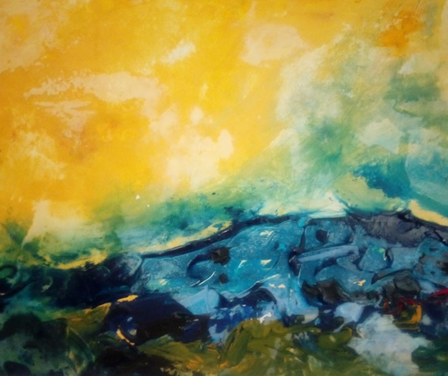 "Mit eigenständigen Texten meine emotionalen Befindlichkeiten sprachlich auf weißen Blättern festzuhalten, hat mich nie gereizt. Vielmehr regen mich weiße Blätter an, Farbe zu setzen. Malen ist für mich Transmitter, mein energetisches Potential umzusetzen, stark und kräftig in Ausdruck und Farbe."