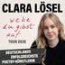 Sie schreibt, was viele fühlen - und trifft damit den Nerv und Pulsschlag unserer Zeit. Clara Lösel berührt mit ihren poetischen Texten über Selbstzweifel, Hoffnung und das Wachsen an Krisen Hunderttausende Menschen und ist damit zur Pionierin einer neuen literarischen Bewegung geworden. Ihr mittlerweile in der 10. Auflage erhältliches Buchdebüt "Wehe du gibst auf" (NOW Verlag) ist seit Erscheinen im April 2025 durchgehend in den Spiegel-Bestsellerlisten vertreten. Nun fügt sie ihrer beeindruckenden Erfolgsgeschichte auch auf dem Live-Sektor ein weiteres Kapitel hinzu: Seit dem 13. November ist die 26-Jährige auf ihrer ersten großen "Wehe du gibst auf"-Tournee in Deutschland unterwegs, die aufgrund der überwältigenden Nachfrage im April 2026 fortgesetzt wird.