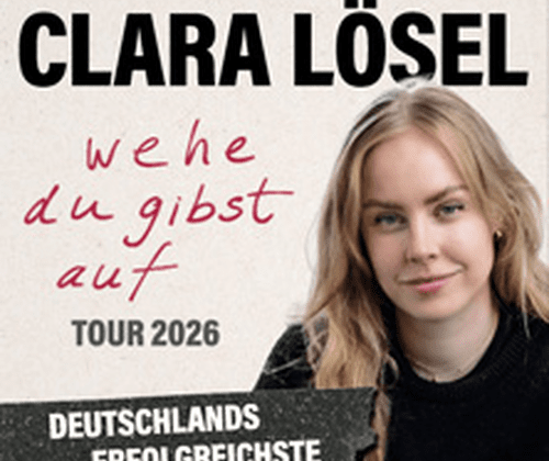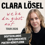 Mehr als 20 Millionen Menschen erreicht Clara Lösel als Poetry Artist regelmäßig auf Instagram, TikTok, Facebook und Co. Ihr Buch "Wehe du gibst auf" - mittlerweile auch als Hörbuch erhältlich - gehört schon jetzt zu den erfolgreichsten Büchern des Jahres. Für ihre enorme Reichweite und Relevanz in der Gesellschaft wurde sie zudem als #BookTok-Autorin des Jahres bei den TikTok Book Awards 2025 nominiert. Ihr nach dem Buch betiteltes Live-Programm "Wehe du gibst auf", mit dem sie derzeit deutschlandweit tourt, findet so großen Anklang, dass die Tournee ab April 2026 fortgesetzt und Clara weitere Städte in Deutschland und erstmals auch in Österreich und in der Schweiz besuchen wird.