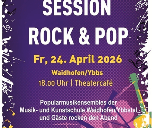 Musikschülerinnen und -schüler haben sich zu brandneuen Schülerbands zusammengefunden und rocken bei der Session Rock & Pop am 24. April um 18 Uhr den Abend im Theatercafé – Schulzentrum Waidhofen/Ybbs. Mit E-Gitarren, Schlagzeug, Mikros und Verstärker wird es auf keinen Fall leise. Die Schülerinnen und Schüler der Klassen Heinz Fallmann, Florian Fangmeyer, Achim Gaspar, Julia Heigl, Günter Schelberger, Josef Wagner und Thomas Zalud bieten ein abwechslungsreiches Programm mit verschiedenen Stilrichtungen, welches einen lebhaften Abend mit toller Stimmung verspricht! Eintritt frei!