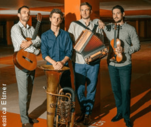 Das Leichte ist am schwersten – Geige, Steirische Harmonika, Gitarre und Tuba – vier virtuose Musiker weben ein dynamisches, kammermusikalisches Geflecht, das in einer Eleganz und Leichtigkeit aufblüht, die man im Zusammenhang mit Volksmusik so nicht erwartet hätte.
