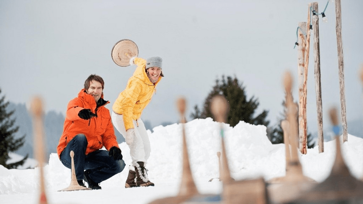 Ruhe, Fingerspitzengefühl und die richtige Taktik sind entscheidend! Beim Eisstockschießen, dem kultigsten Geschicklichkeitsspiel in den Bergen, ist Geschick gefragt, wenn es darum geht, Punkte zu sammeln. Ob im Team oder einzeln, Spaß ist in jedem Fall ebenfalls garantiert.