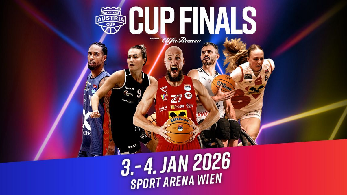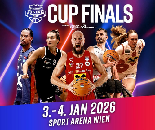 Die Basketball Austria Cup Finals – 2026 erstmals in der Sport Arena Wien! Damit alles noch größer, noch inklusiver. Volle Basketball-Action für klein und groß und alle. Rollstuhl, Damen, Herren – es wird der Mega-Event im heimischem 5x5-Basketball. Sichere dir jetzt deine Tickets.