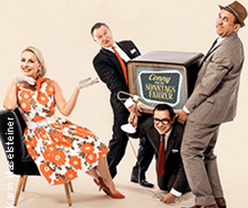 Die vierköpfige Musikgruppe hat ein eigenes Drehbuch für einen wunderbaren Fernsehabend geschrieben, bei dem Sie unglaublich klingende Nachrichten, skurrile Werbeunterbrechungen, legendären Shows, jede Menge Witz und gute Laune sowie natürlich die großartigen Schlager dieser Zeit erleben dürfen. Egal ob „Die Liebe ist ein seltsames Spiel“, „Mit 17 hat man noch Träume“, „Capri Fischer“….die großen Hits von gestern lassen auch heute noch unsere Herzen höher schlagen.