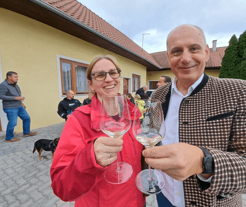 Danach holt Lössguide Fritz Genger, ein ausgebildeter Kellergassenführer und Weinfachmann vom Ort, die Gäste ab und führt sie in Weinrieden und Lössschluchten, in den schönsten Keller im Ort wo die Besucher ein Begrüßungsstamperl und ein kleines Präsent erwartet. Der Lössguide erzählt während dieser Weinwanderung Spannendes und Interessantes über den Ort, den Wagram und seinen Weinen, den Kellergassen, über u.a. Erdställe und Mammuts. Zum Abschluss des abwechslungsreichen Nachmittages geht für die Gäste zu einer fachmännisch kommentierten Weinverkostung. 5 -6 Wagramer Qualitätsweine werden dabei verkostet. Dazu gibt es Wasser und Nussbrot.