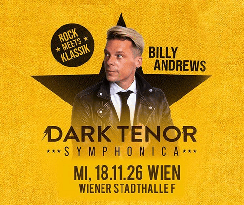 2025 war ein Rekordjahr für Rock-Tenor Billy Andrews aka THE DARK TENOR: Mehr als 100.000 begeisterte Zuschauer erlebten seine einzigartige Mischung aus Klassik und Rockmusik live. Mit diesem Erfolg im Rücken zündet Andrews nun in die nächste Stufe seiner kometenhaften, musikalischen Reise – mit der neuen Tour „SYMPHONICA“.
